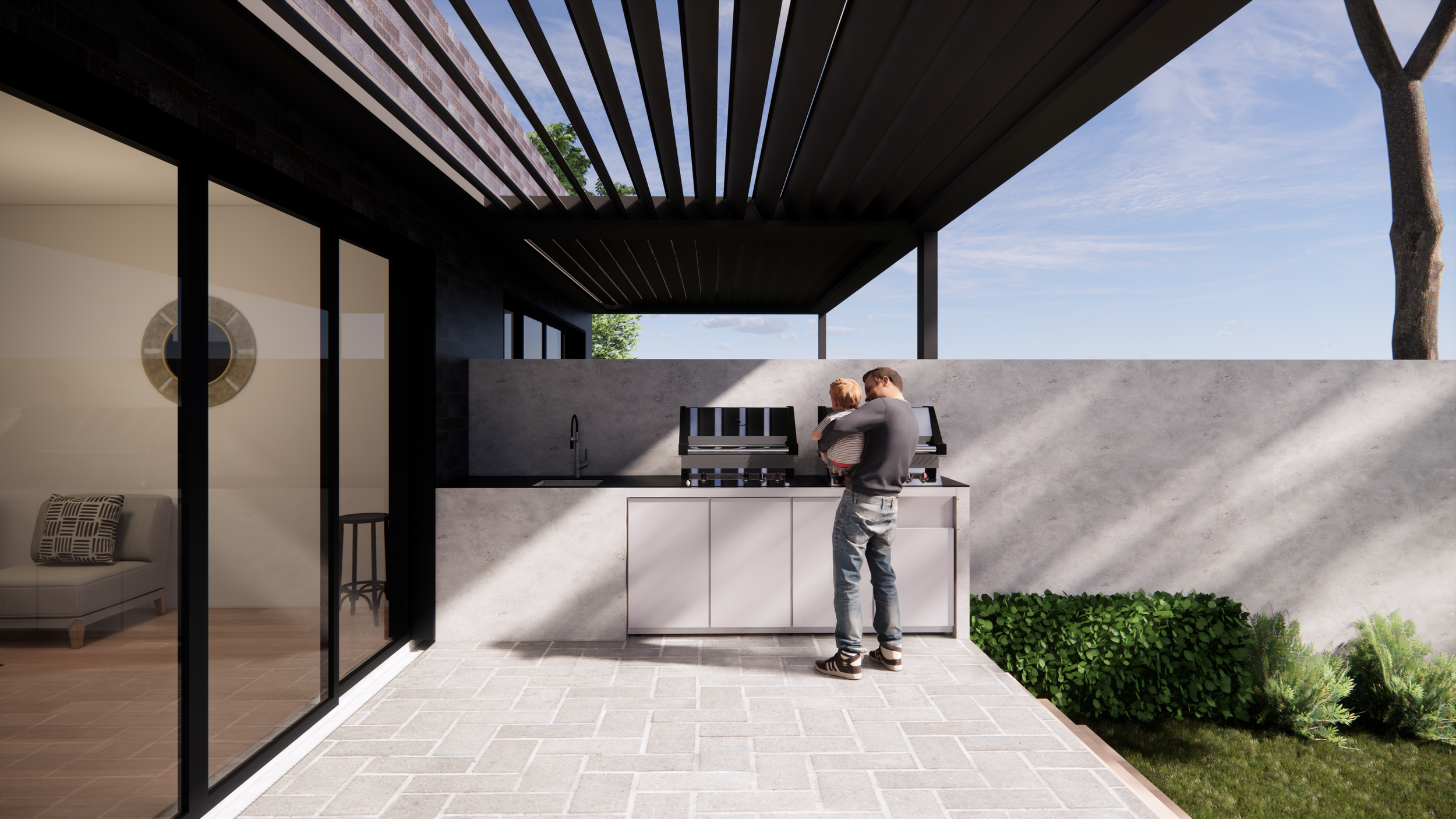 A clean, masonry dual-occupancy proposal was developed for this Bexley North site. Each dwelling consists of 5 bedrooms and a large open living and dining zone, flowing to an expansive backyard. Brick is utilised significantly throughout the building facade, tempered by the addition of warm timber and bespoke glazing details.